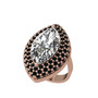Beyaz zirkon ve siyah zirkon 925 ayar rose altın kaplama gümüş yüzük