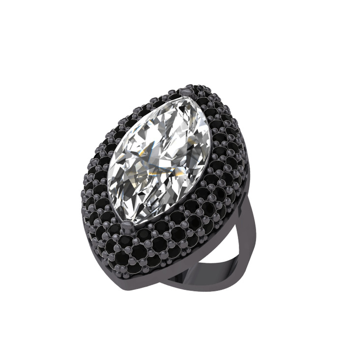 Beyaz zirkon ve siyah zirkon 925 ayar siyah rodyum kaplama gümüş yüzük