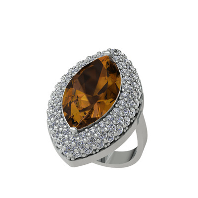 Dumanlı kuvars ve pırlanta 18 ayar beyaz altın yüzük (2.952 karat)