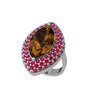 Dumanlı kuvars ve rodolit garnet 18 ayar beyaz altın yüzük