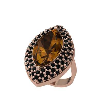 Dumanlı kuvars ve siyah zirkon 18 ayar rose altın yüzük