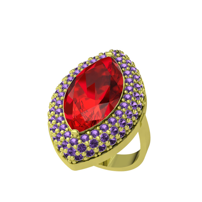 Garnet ve ametist 925 ayar altın kaplama gümüş yüzük