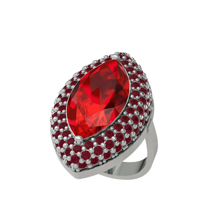 Garnet ve kök yakut 14 ayar beyaz altın yüzük