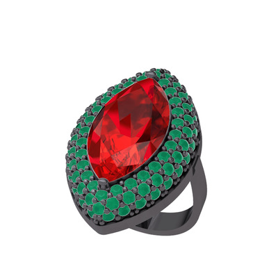 Garnet ve kök zümrüt 925 ayar siyah rodyum kaplama gümüş yüzük