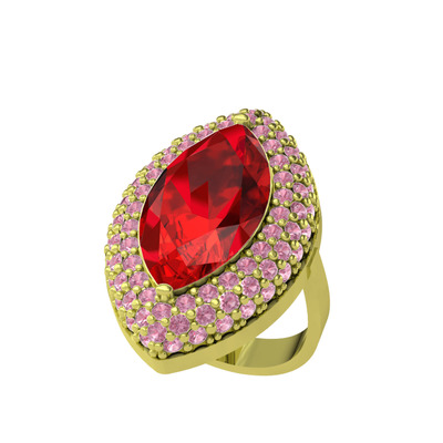 Garnet ve pembe kuvars 925 ayar altın kaplama gümüş yüzük