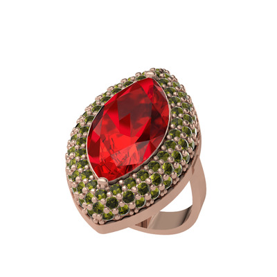 Garnet ve peridot 925 ayar rose altın kaplama gümüş yüzük