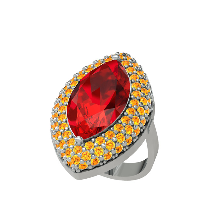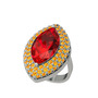Garnet ve sitrin 14 ayar beyaz altın yüzük