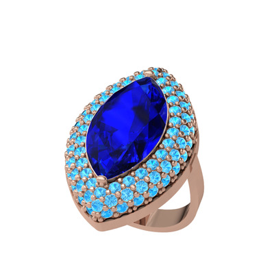 Lab safir ve akuamarin 925 ayar rose altın kaplama gümüş yüzük