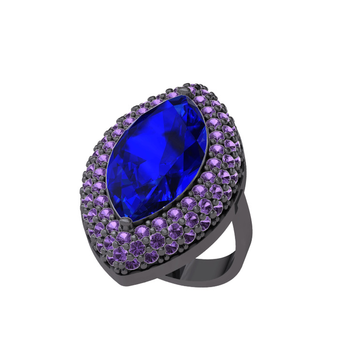 Lab safir ve ametist 925 ayar siyah rodyum kaplama gümüş yüzük