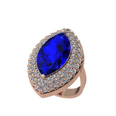 Lab safir ve beyaz zirkon 18 ayar rose altın yüzük