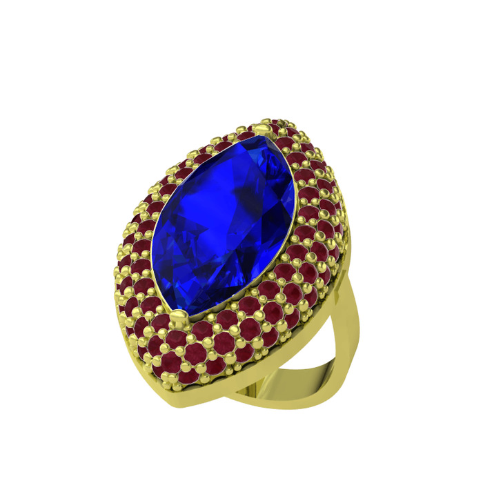 Lab safir ve kök yakut 14 ayar altın yüzük