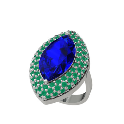 Lab safir ve kök zümrüt 8 ayar beyaz altın yüzük