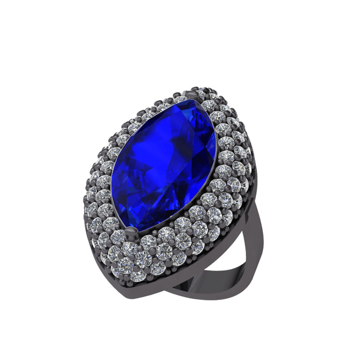 Lab safir ve pırlanta 925 ayar siyah rodyum kaplama gümüş yüzük (2.952 karat)