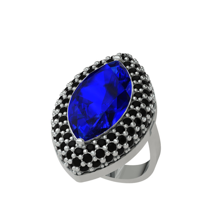 Lab safir ve siyah zirkon 14 ayar beyaz altın yüzük