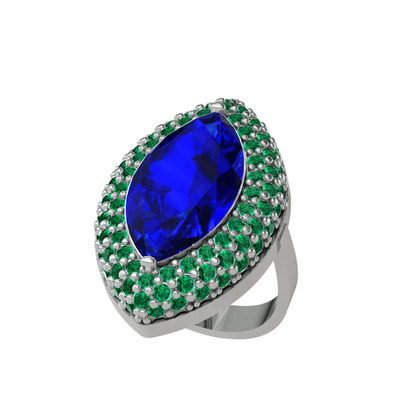 Lab safir ve yeşil kuvars 14 ayar beyaz altın yüzük