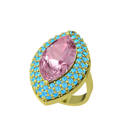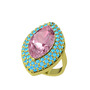 Pembe kuvars ve akuamarin 14 ayar altın yüzük