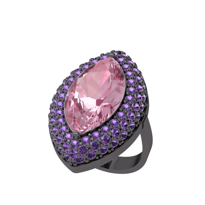 Pembe kuvars ve ametist 925 ayar siyah rodyum kaplama gümüş yüzük