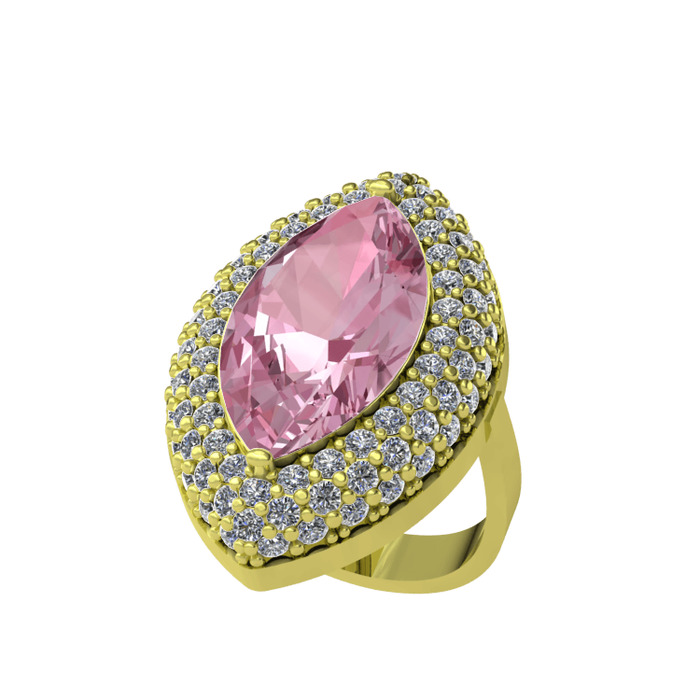 Pembe kuvars ve beyaz zirkon 14 ayar altın yüzük