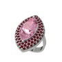 Pembe kuvars ve kök yakut 8 ayar beyaz altın yüzük