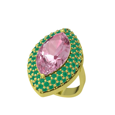 Pembe kuvars ve kök zümrüt 925 ayar altın kaplama gümüş yüzük