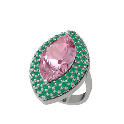 Pembe kuvars ve kök zümrüt 925 ayar gümüş yüzük
