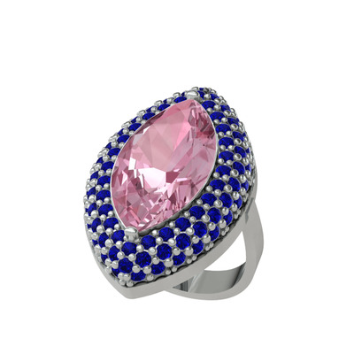 Pembe kuvars ve lab safir 925 ayar gümüş yüzük