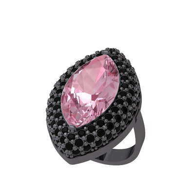 Pembe kuvars ve siyah zirkon 925 ayar siyah rodyum kaplama gümüş yüzük