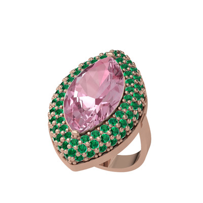 Pembe kuvars ve yeşil kuvars 8 ayar rose altın yüzük