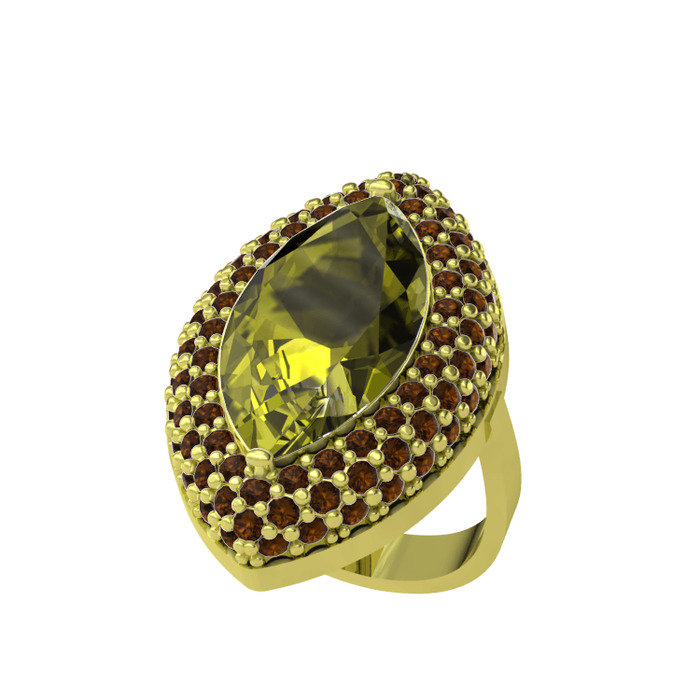 Peridot ve dumanlı kuvars 925 ayar altın kaplama gümüş yüzük