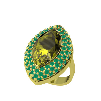Peridot ve kök zümrüt 8 ayar altın yüzük