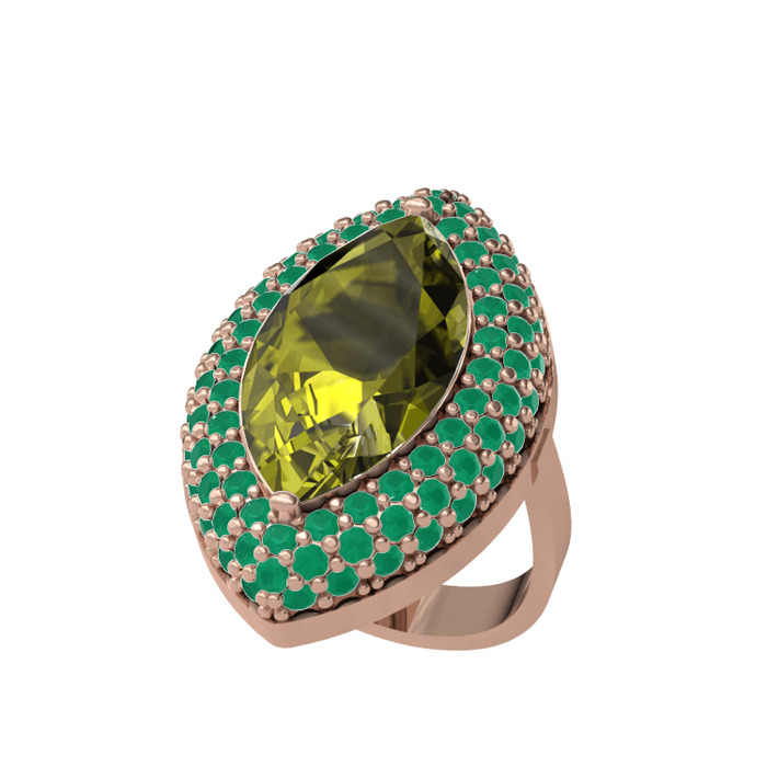 Peridot ve kök zümrüt 925 ayar rose altın kaplama gümüş yüzük