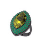 Peridot ve kök zümrüt 925 ayar siyah rodyum kaplama gümüş yüzük