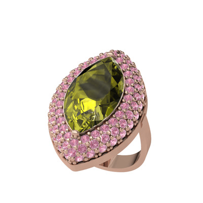 Peridot ve pembe kuvars 8 ayar rose altın yüzük