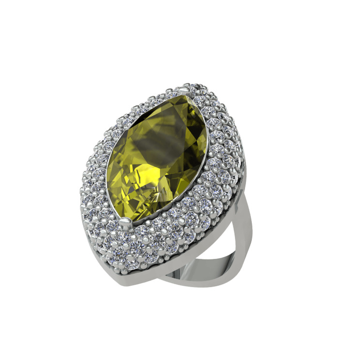 Peridot ve pırlanta 14 ayar beyaz altın yüzük (2.952 karat)