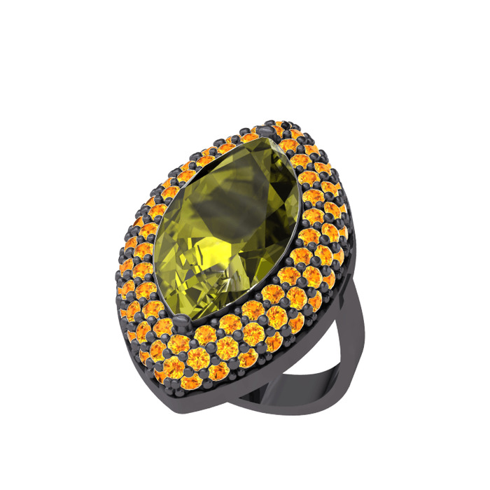 Peridot ve sitrin 925 ayar siyah rodyum kaplama gümüş yüzük
