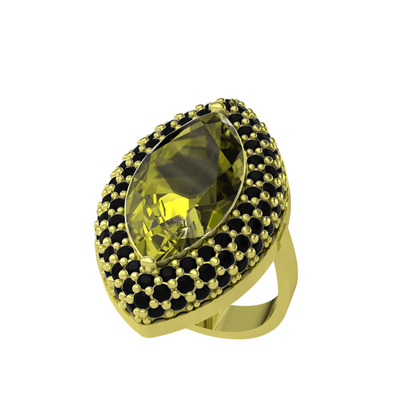 Peridot ve siyah zirkon 14 ayar altın yüzük