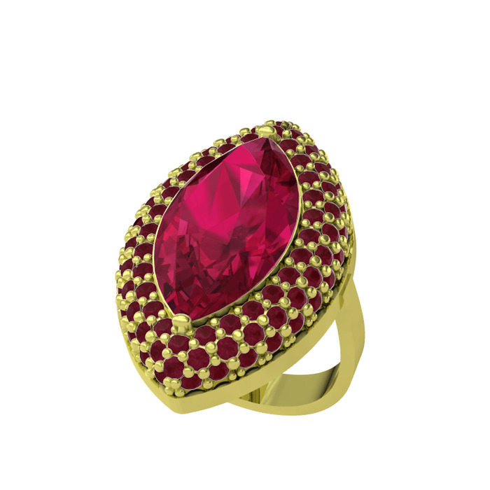 Rodolit garnet ve kök yakut 8 ayar altın yüzük