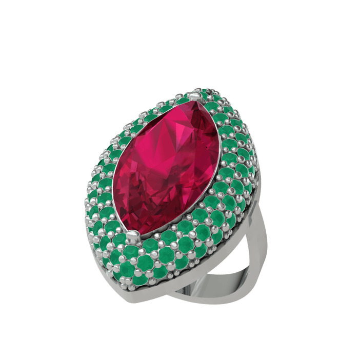 Rodolit garnet ve kök zümrüt 925 ayar gümüş yüzük