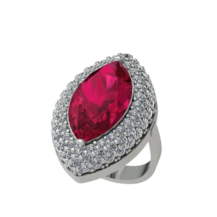 Rodolit garnet ve pırlanta 14 ayar beyaz altın yüzük (2.952 karat)