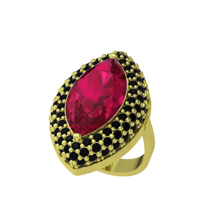 Rodolit garnet ve siyah zirkon 8 ayar altın yüzük