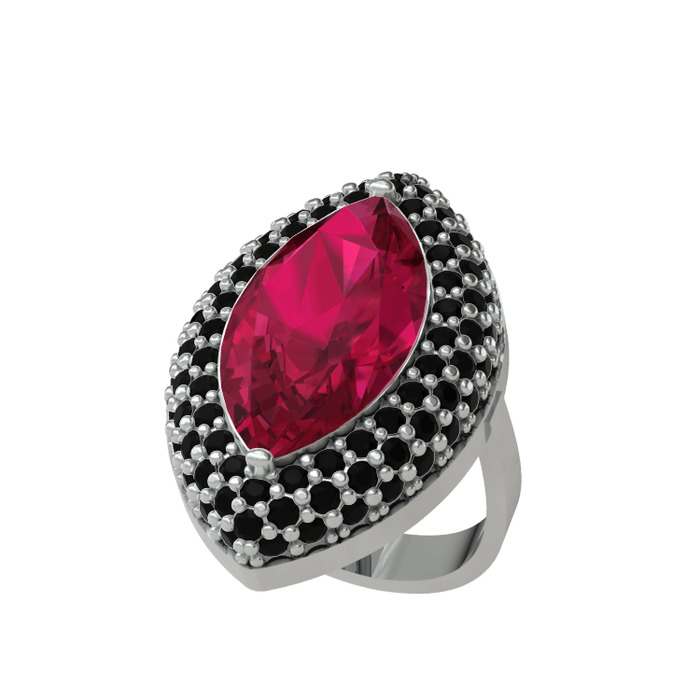 Rodolit garnet ve siyah zirkon 8 ayar beyaz altın yüzük
