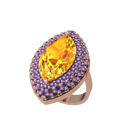 Sitrin ve ametist 14 ayar rose altın yüzük