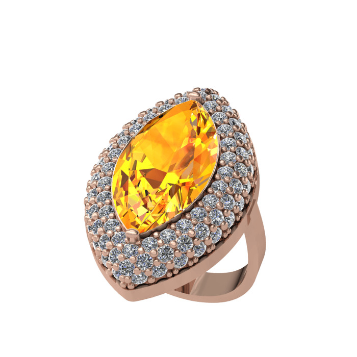 Sitrin ve beyaz zirkon 8 ayar rose altın yüzük