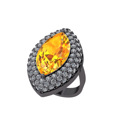 Sitrin ve beyaz zirkon 925 ayar siyah rodyum kaplama gümüş yüzük