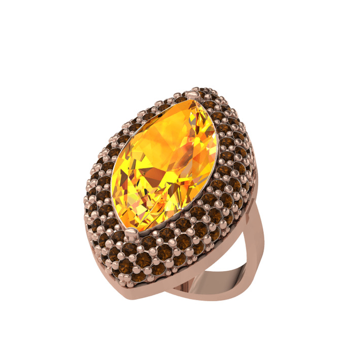 Sitrin ve dumanlı kuvars 18 ayar rose altın yüzük