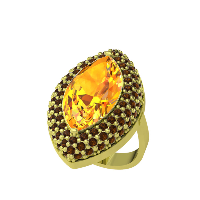Sitrin ve dumanlı kuvars 925 ayar altın kaplama gümüş yüzük