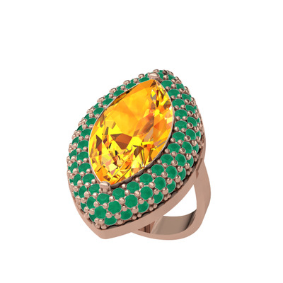 Sitrin ve kök zümrüt 8 ayar rose altın yüzük