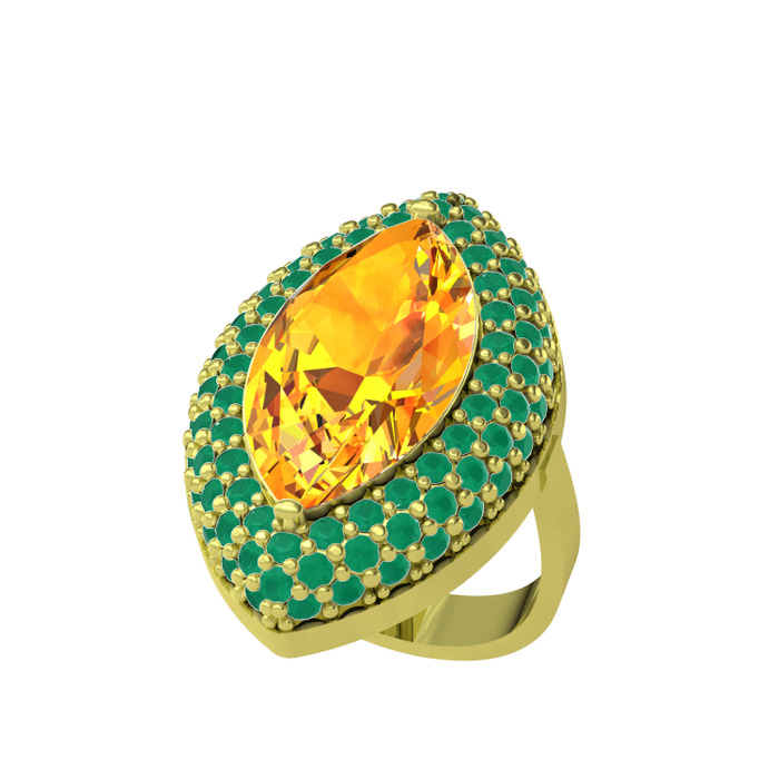 Sitrin ve kök zümrüt 925 ayar altın kaplama gümüş yüzük