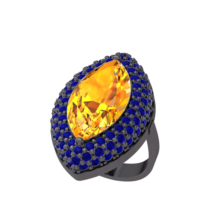 Sitrin ve lab safir 925 ayar siyah rodyum kaplama gümüş yüzük