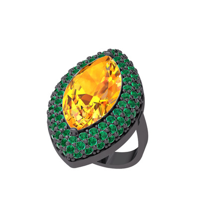Sitrin ve yeşil kuvars 925 ayar siyah rodyum kaplama gümüş yüzük